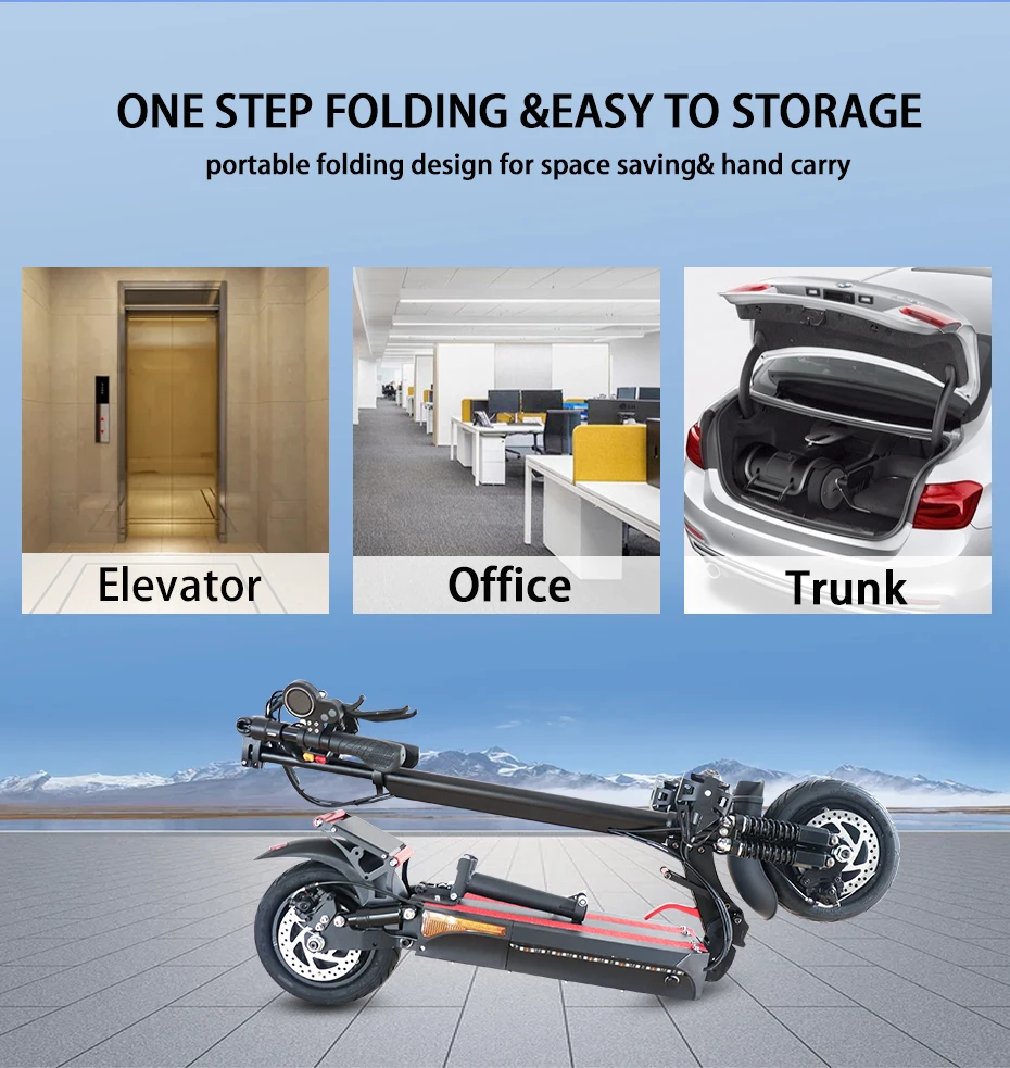 The electric scooter adopt one step folding and easy to storage,it can put in elevator,office,trunk.