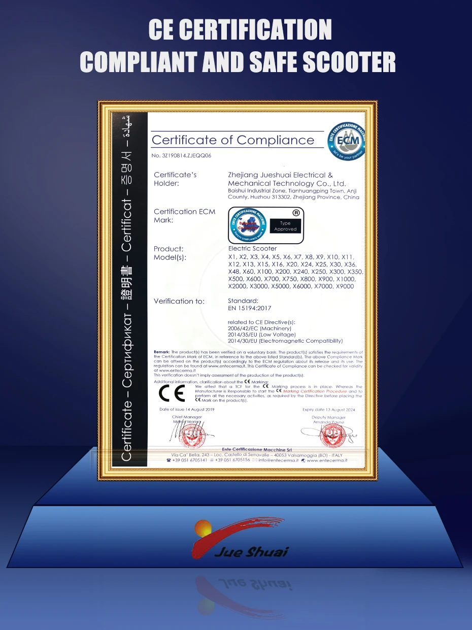 A: Yes, all scooters have passed CE certification, and the seller can provide certification