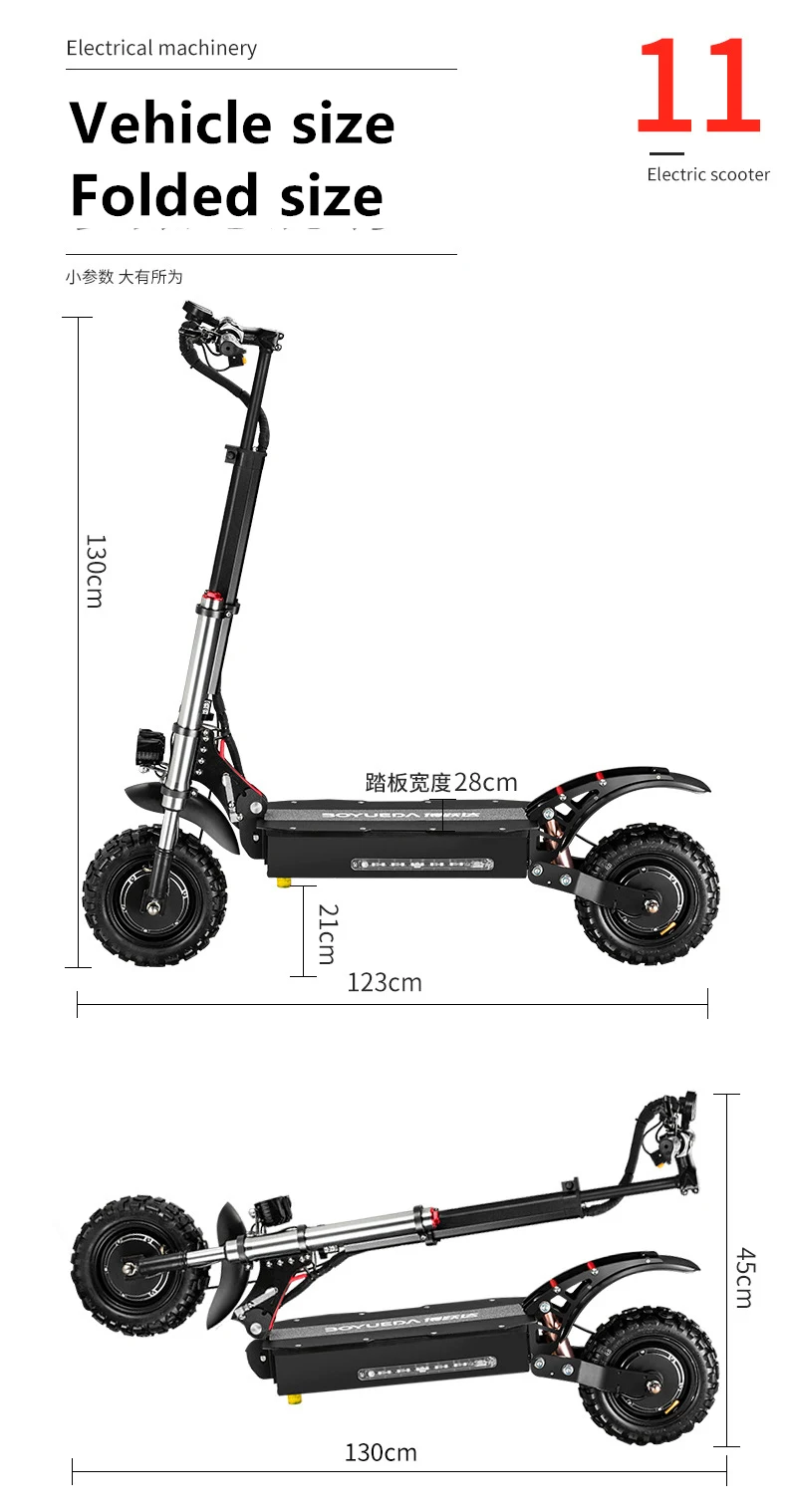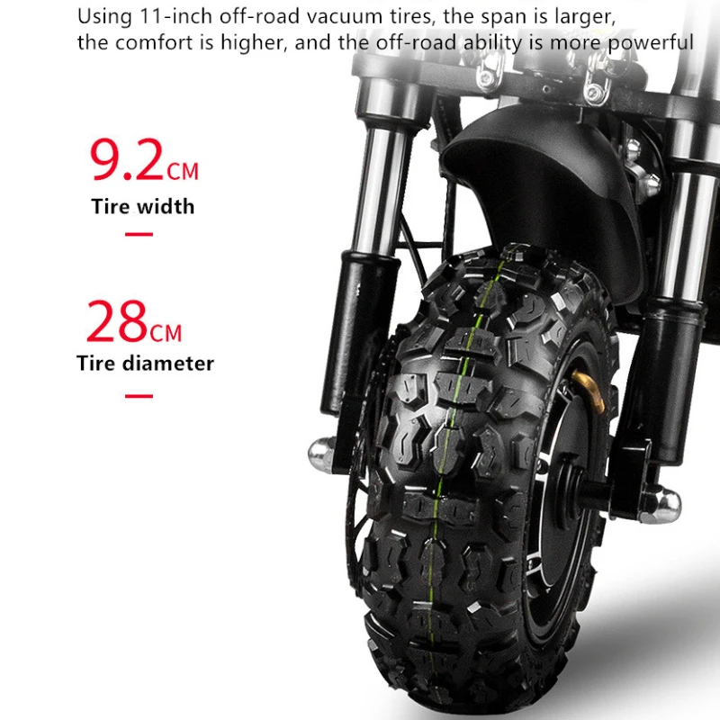 2. Tires: 11-inch (11 * 3.6 inches) off-road vacuum tires, can be replaced with road tires