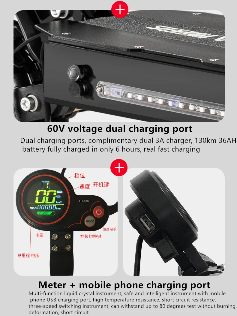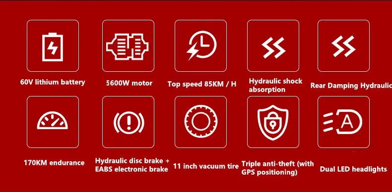 4. Electric power: 60V5600W (single motor 2800W dual drive motor)
