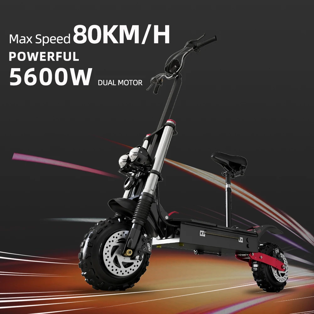 60V 5600W Dual Drive Electric Scooter 80km/h Fast E scooter Warehouse in Europe Foldable Adult Skateboard with Seat 2 wheels