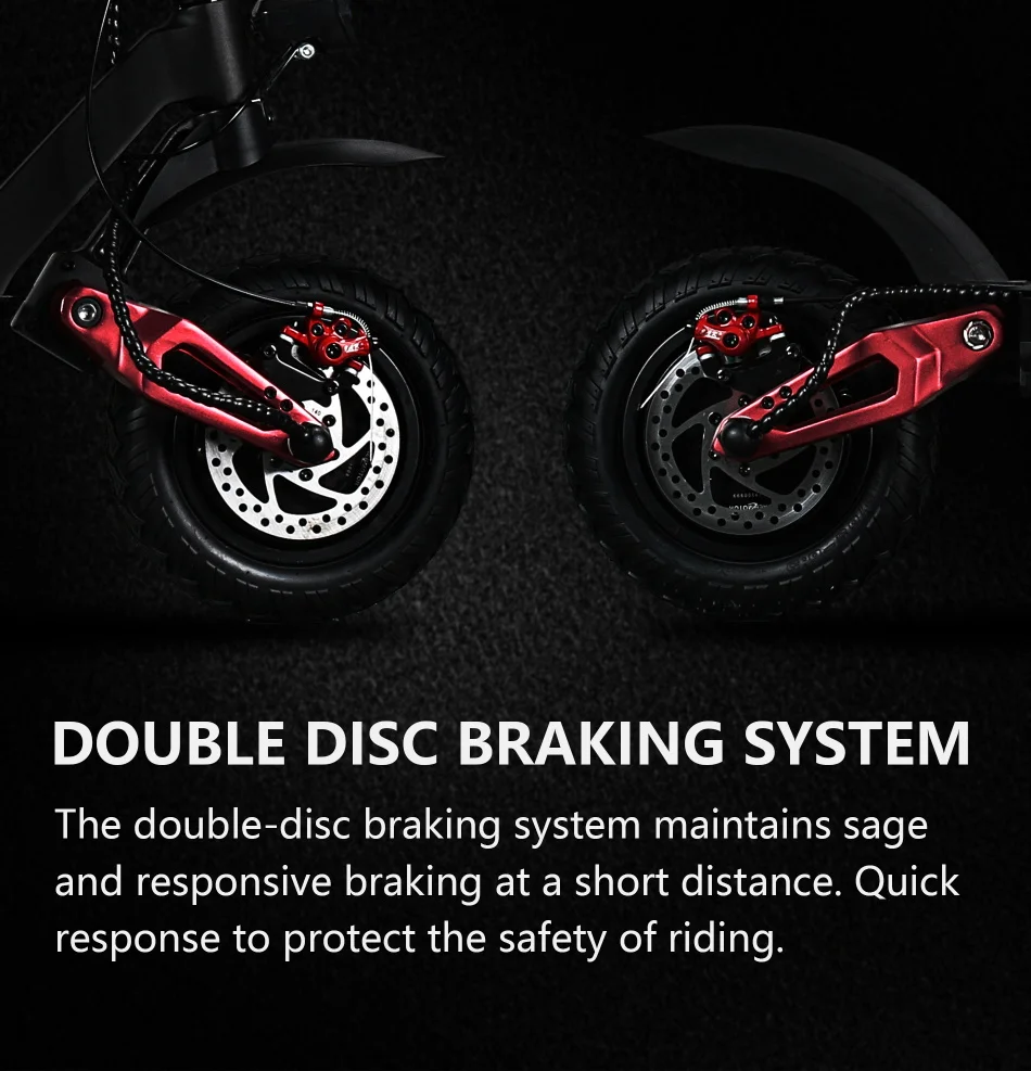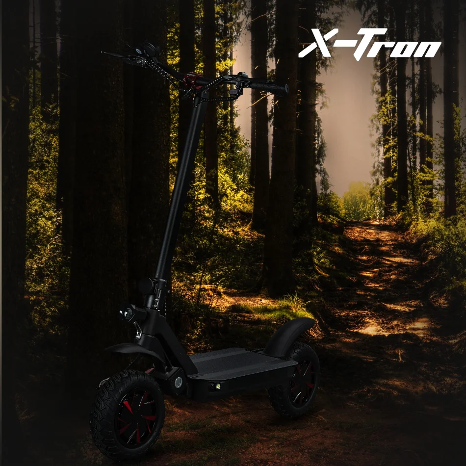 The X-Tron X09 is a high-performance dual-motor, single suspension electric scooter that brings off-road performance into the urban environment. The X09 features front and rear disc mechanical brakes.