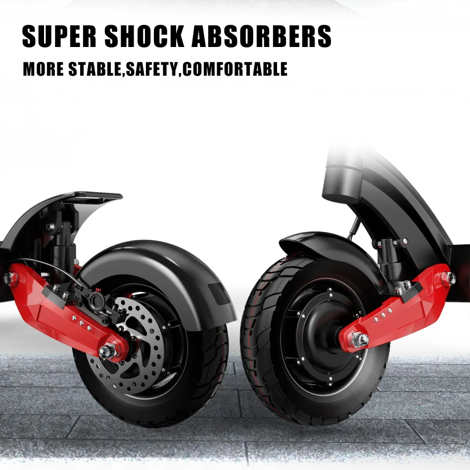The 10-inch wide and Inflatable off-road tires, front and rear spring shock absorbers provide a surprisingly smooth riding experience, and absolutely NO punctures anymore.
